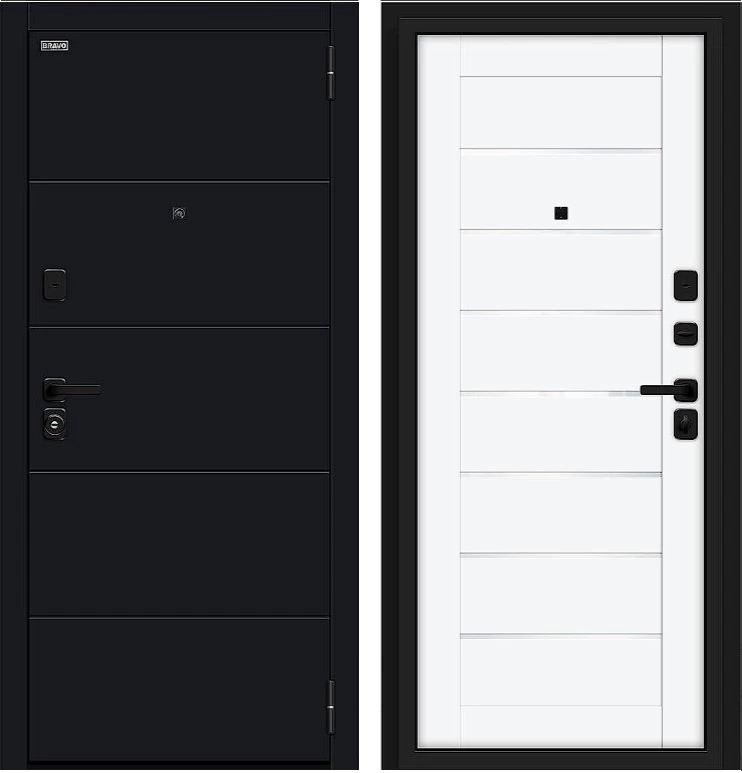 Надежная входная Дверь Браво Прайм/SBlack-Black Shell/White Silk премиум класса по цене 39 879 руб. Большая толщина стали защитит от проникновения в ваш дом, квартиру или коттедж. Используется очень качественная фурнитура: замки, цилиндры, ручки, защелки. Покрытие и отделка двери изготовлено под внимательным контролем производителя. Дверь имеет долгий срок службы и гарантию.