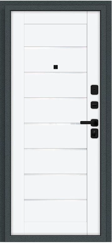 Надежная входная Дверь Браво Техно/SBlack Старк антрацит/White Silk премиум класса по цене 35 729 руб. Большая толщина стали защитит от проникновения в ваш дом, квартиру или коттедж. Используется очень качественная фурнитура: замки, цилиндры, ручки, защелки. Покрытие и отделка двери изготовлено под внимательным контролем производителя. Дверь имеет долгий срок службы и гарантию.
